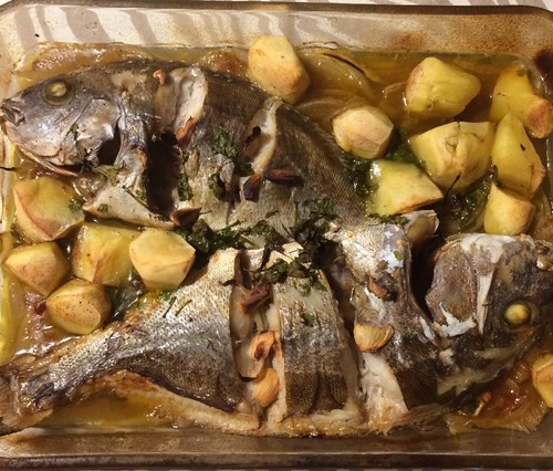 ![]() Pargo no forno e batatas |