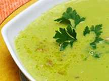 Aqueça a água e ponha as ervilhas para cozinhar. Desosse o peito de frango, faça tiras do filé e junte os ossos às ervilhas, para dar sabor ao caldo. Entre com o alho, a cebola cortada à juliana e deixe cozinhar. Tempere o frango com sal e um toque de curry, se preferir, e reserve. Frite o bacon e junte o frango para dourar na mesma panela. Separe as ervilhas já cozidas e bata no liquidificador. Passe o caldo pela peneira e volte ao fogo. unte o creme de leite com as ervilhas batidas, volte ao caldo e deixe levantar fervura. Ponha o frango já frito com o bacon em uma sopeira. Cubra com seu delicioso caldo e sirva.